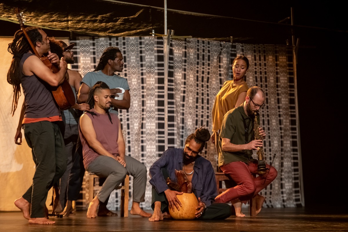 artistic director: Clara Andermatt | creation: Clara Andermatt and João Lucas | tribute idea: Darlene Barreto | special participation: Mayra Andrade | artistic assistance: Felix Lozano, Amélia Bentes | performers: Avelino Chantre (Avê), Bruno Amarante (Djam Neguin), Diogo Picão Oliveira, Domingos Sá (Kabum), Jorge Almeida, José Cardoso (Zeca), Nickita Bulú, Sócrates Napoleão | lighting designer: Nuno Meira | costume designer: José António Tenente | scenic space: Artur Pinheiro | sound design and operation: Ricardo Figueiredo | lighting operation: Manuel Abrantes | video and making of: Catarina Alves Costa | production: ACCCA - Companhia Clara Andermatt | co-production: Centro Cultural de Belém, Teatro Municipal do Porto, Cineteatro Louletano, Cine-Teatro Avenida, Teatro José Lúcio da Silva, 23 Milhas - Ílhavo | residences partners: Musibéria, O Espaço do Tempo | Cape Verde residence partners: Camões - Centro Cultural Português na Praia, Câmara Municipal de Santa Catarina | communication partner: Antena 2 | audiovisual archive transcription support: Universidade de Aveiro | executive production: Helena Menino, João Albano, Andreia Cordeiro | production support: Linha de Fuga, Jasper Walgrave | special thanks: Darlene Barreto, Andreia Falcão Mendes, João Branco, Bob Mascarenhas, Raiz di Polon, Estúdio Gota D'Arte, Teatro do Bairro, Centro Cultural de Cabo Verde em Lisboa, Interpress - Hub Criativo do Bairro Alto