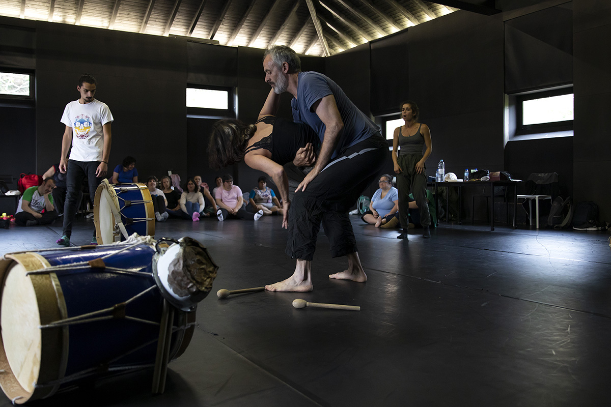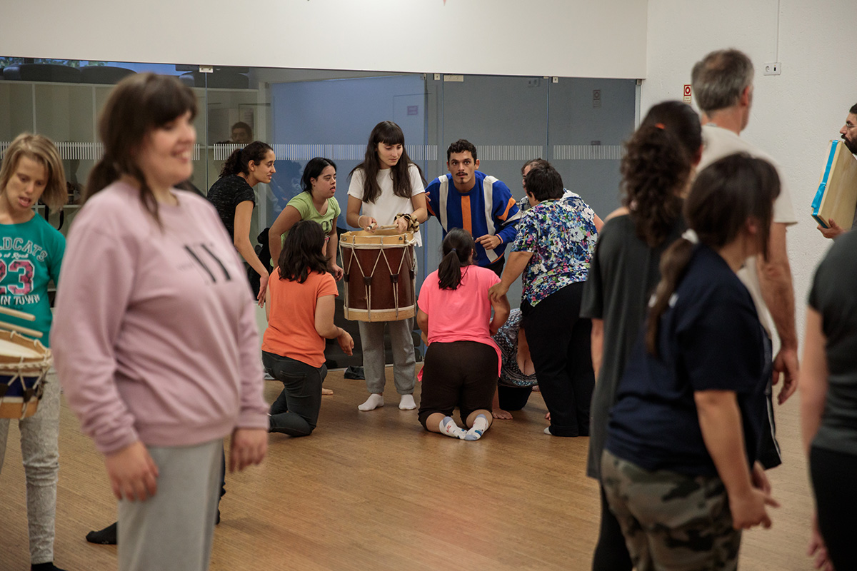 At “Lab InDança” a heterogeneous group of persons from the local communities, work in continuity upon self-awareness, individual expression, the notion of rhythm, and of listening. There are weekly classes throughout the school year, in parallel with the organization of artistic residencies, where professionals from different artistic disciplines are invited to further develop the learning and investigation processes.